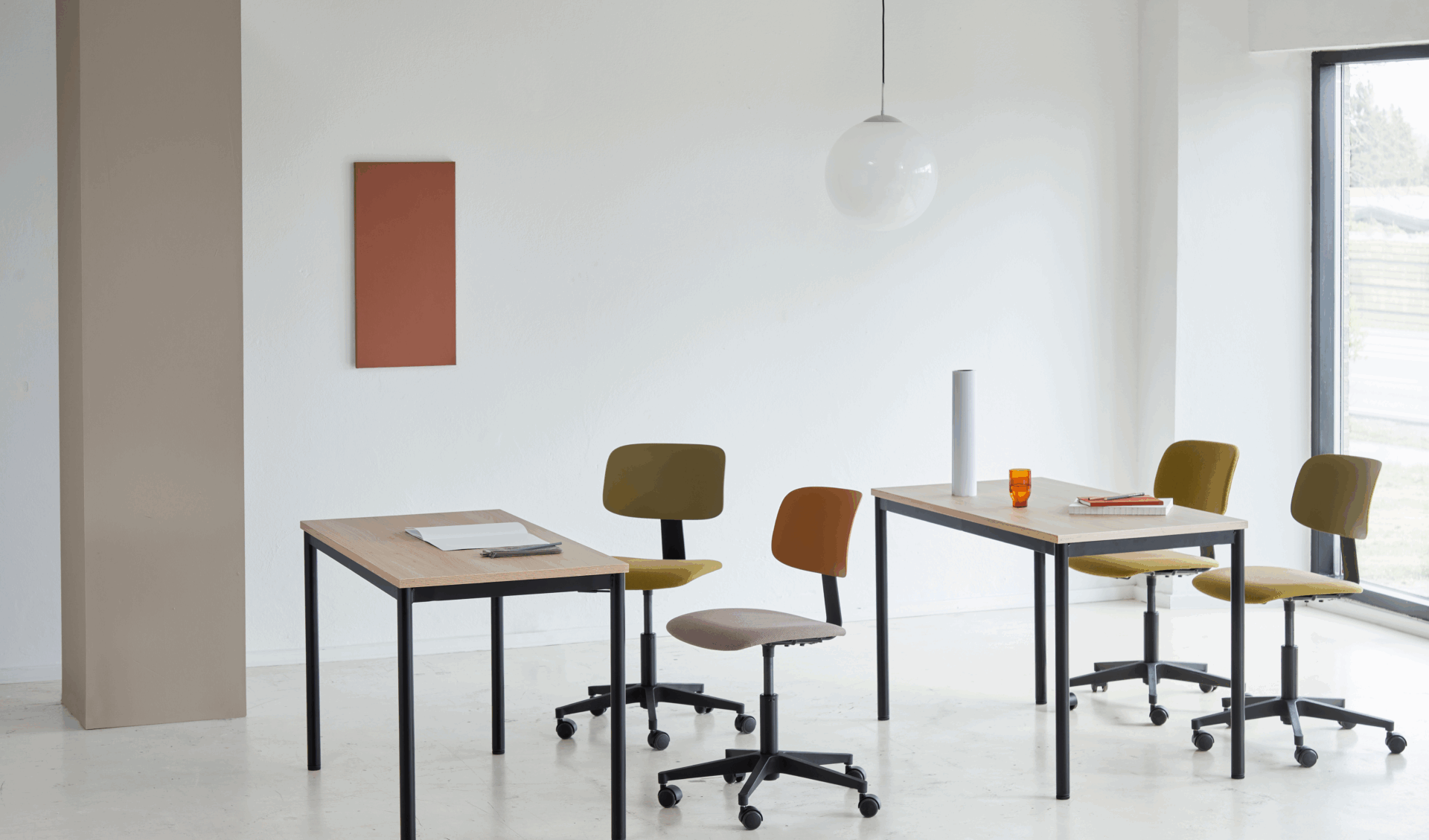 Ergonomiske stole, uopslidelige borde og fleksible loungemøbler